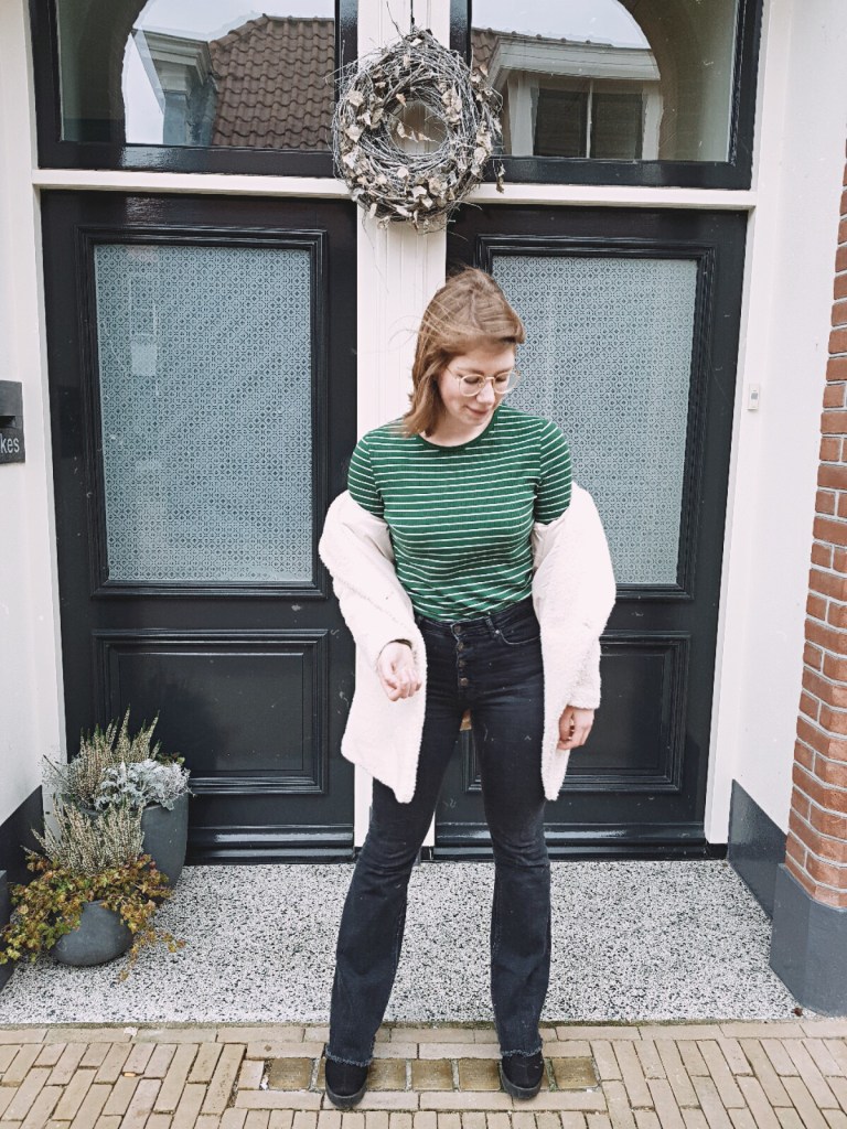 If you guys follow me on IG, you probably know about my love for stripes. My closet is full of striped shirts in so many colors and I think they just look good with everything. So, it was a surprise when I noticed there isn’t one outfit with stripes on my blog yet! The look I’m sharing with you guys today is also about my other love: flared jeans. These jeans just make my legs look longer and instantly make me feel like a total fashionqueen ;p As you guys may know, next week I’m going to Amsterdam and I’m taking lots of outfits with me. That’s also why I’ll be posting on Sunday next week, so I can immediately share one of my Amsterdam outfits with you. Apart from Amsterdam, there is also a cool collab with Polette Eyewear coming up (yayyy!). Ohh and one more thing: I also found some pretty white ankle boots already (I was talking about that two weeks ago, remember?) ;p