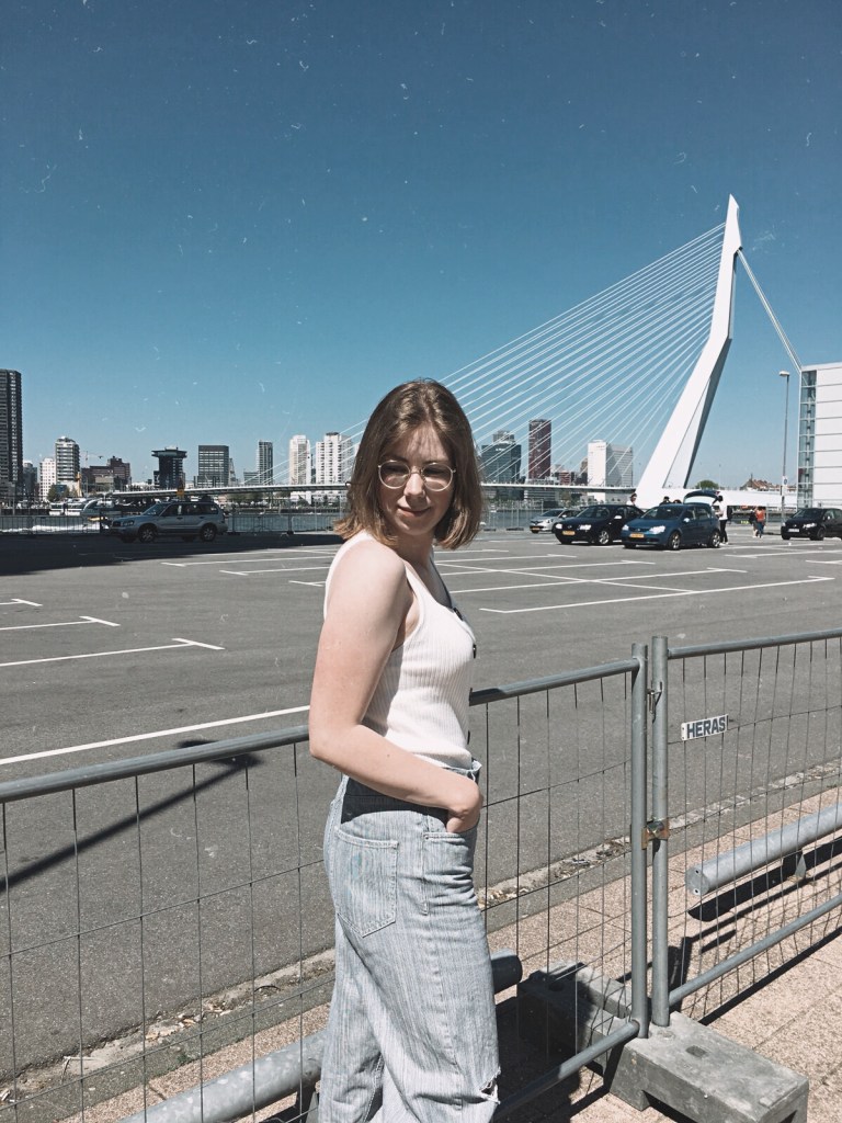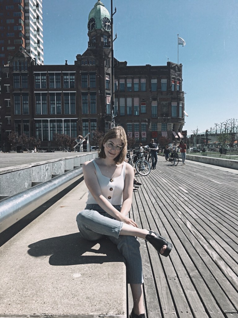 So here it is: my first outfit which I shot in Rotterdam! Just like when we shot in Amsterdam, the weather was perfect. The temperature was great, it was sunny and I really had a feeling that I was on a holiday :) Rotterdam itself also was a great experience! I always thought Amsterdam was way better then Rotterdam, but I must say that they both have their unique vibe and I love both of them. We walked past some historical buildings: the White House, Hotel New York, the old city hall and the old Post Office, but we also enjoyed the modern buildings, some skyscrapers and ofcourse the Erasmus Bridge. From all the places we went that day I enjoyed the Wilhelminapier the most: the pics of todays post are all shot there. Ofcourse I also wanted to take some pics in front of the Wereldmuseum, but the building was covered in scaffolding that day (this can only happen to me haha). Nevertheless I enjoyed Rotterdam a lot and I will definitely come back one day (Wereldmuseum, you can’t escape from me).