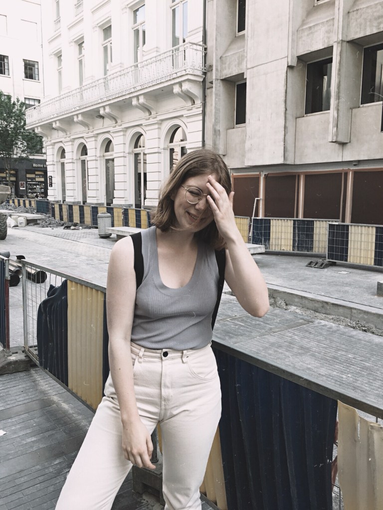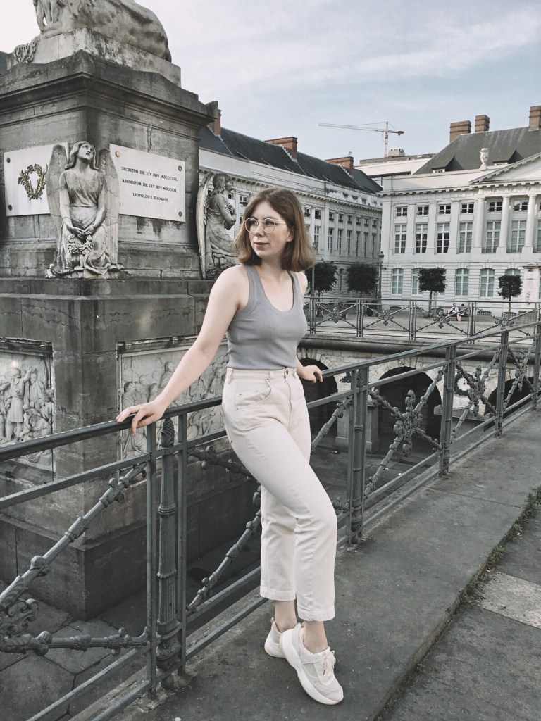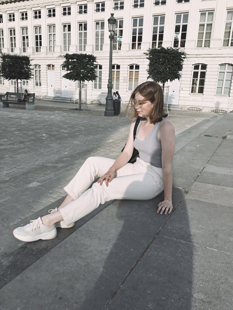 It is totally different compared to the weekend I was in Brussels. The weather was so lovely, with lots of sun and stuff. I wore some light, cool colors and of course one of my favorite sneakers. The blue top I’m wearing is just so soft and I’m really into rib knitted tops lately.