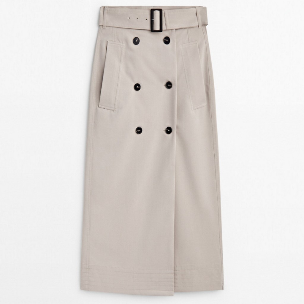 1. MASSIMO DUTTI Beige Midi Skirt